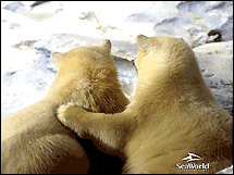 Cozy up to these cuddly polar bears with a wallpaper from SeaWorld Orlando..